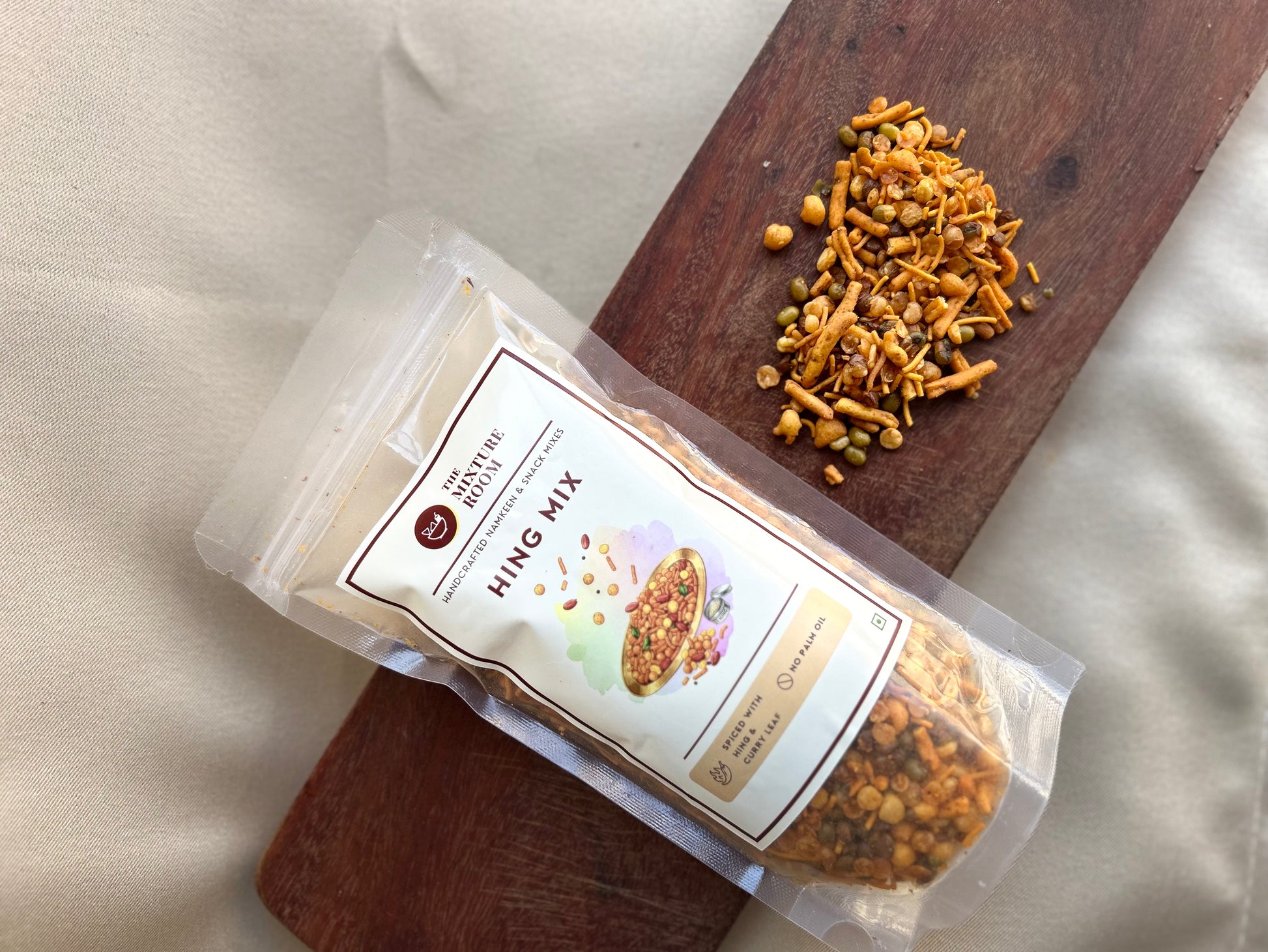 Meet the flavor bomb your snack bowl was waiting for. Our Hing Mix is a masterfully curated blend of aromatic hing layered into a crunchy medley of moong daal, roasted peanuts, and five other carefully selected ingredients that sing in harmony. Each bite delivers that distinctive hing punch—a flavor beloved across Indian kitchens—wrapped in an irresistible crunch. Bold, authentic, and unapologetically Indian. Snack like you mean it.